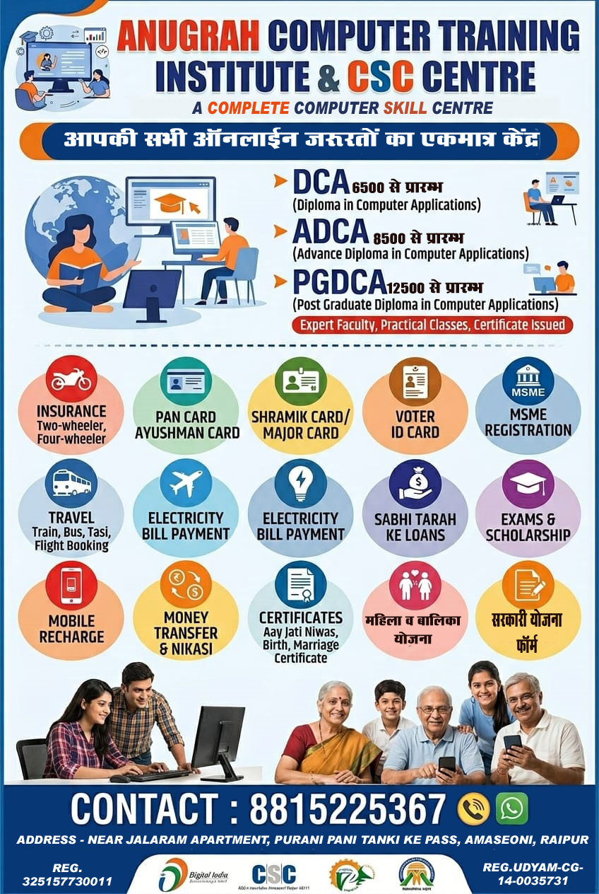 हमारे संस्थान में हम केवल पढ़ाई ही नहीं, बल्कि प्रैक्टिकल स्किल्स और रियल लाइफ अनुभव पर भी पूरा ध्यान देते हैं। हमारे कोर्स इस तरह से डिजाइन किए गए हैं कि छात्र आसानी से कंप्यूटर, अकाउंटिंग और डिजिटल सेवाओं को समझ सकें और आत्मविश्वास के साथ काम कर सकें।